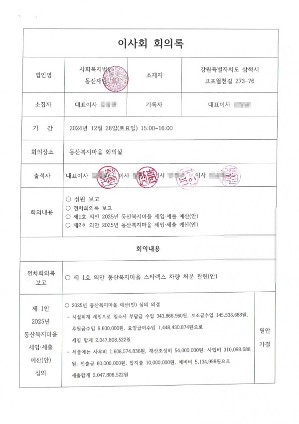2025년 예산 이사회 회의