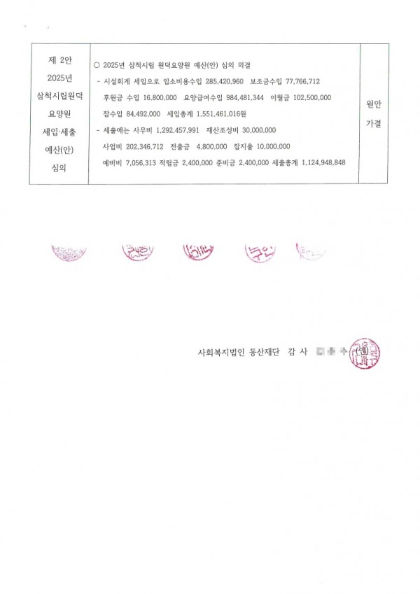 2025년 예산 이사회