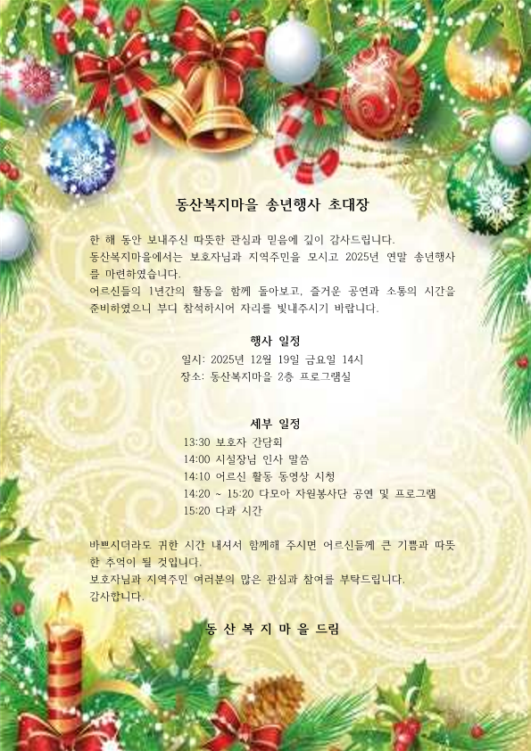 작성자 동산복지마을 작성일25-12-02 11:46 조회5회 댓글0건관련링크