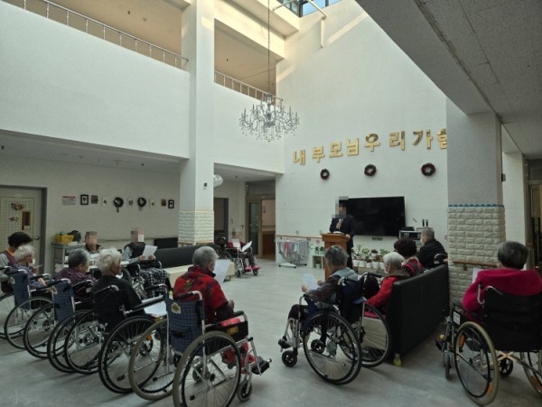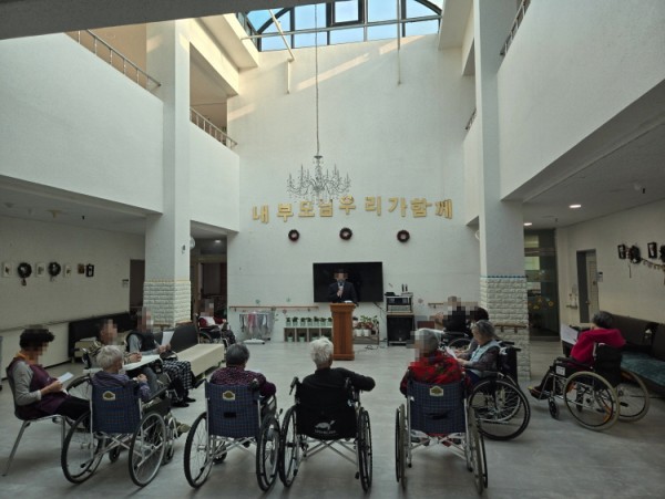 매주 목사님이 방문하셔서 어르신들과 함께 예배를 드립니다.