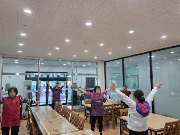 매일 아침 업무 전 근골격계 예방을 위해 모든 직원들이 체조를 합니다.