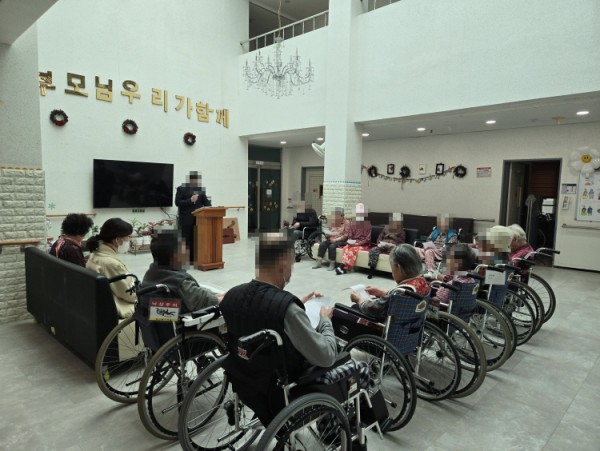주 1회 목사님이 방문하셔서 어르신들과 함께 예배를 드립니다.