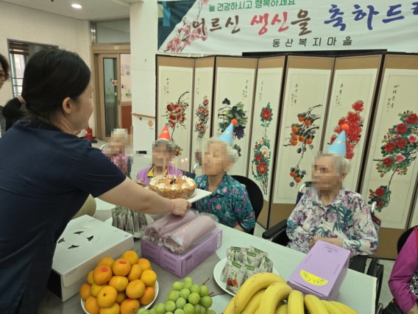 어르신들이 행복하게 건강하시길 바라는 마음을 담아 생신상을 차려드리고 즐거운 시간을 가졌습니다.